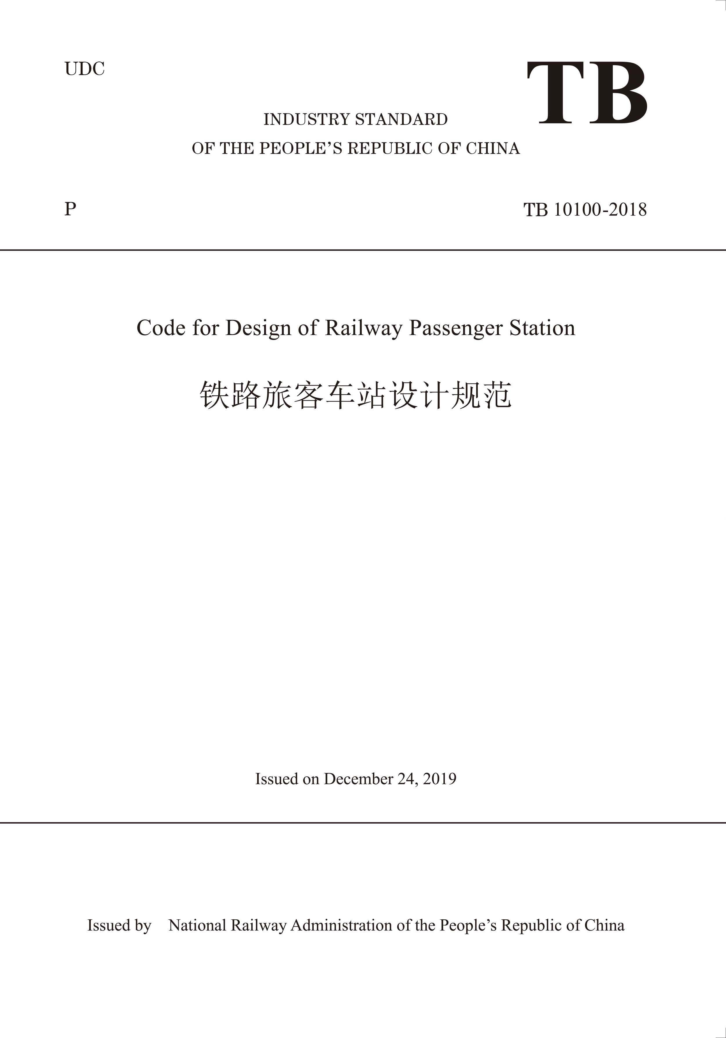 书名:TB 10100-2018 Code for Design of Railway Passenger Station铁路旅客车站设计规范