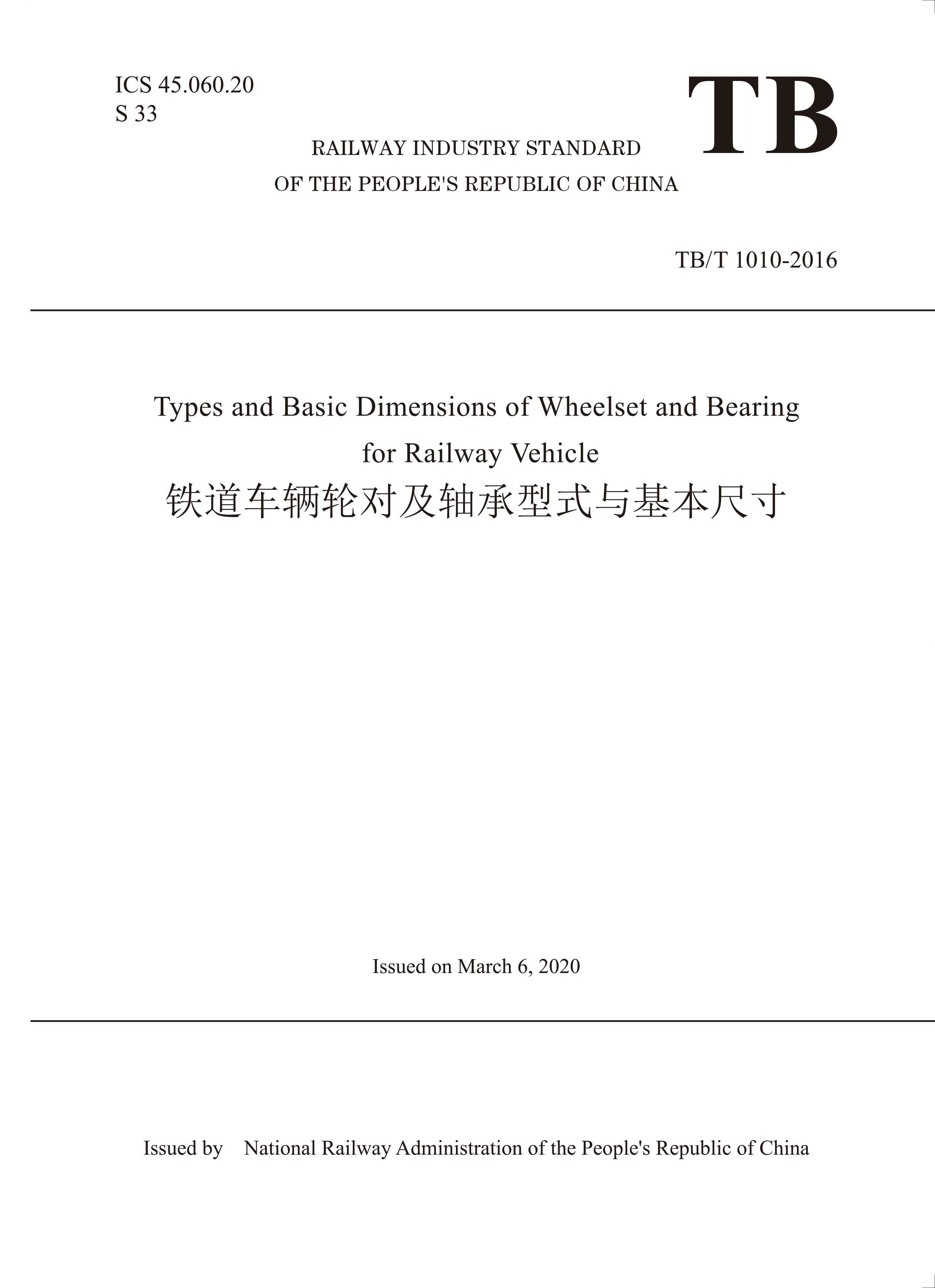 书名:Types and Basic Dimensions of Wheelset and Bearing for Railway Vehicle 铁道车辆轮对及轴承型式与基本尺寸(TB/T 1010-2016)