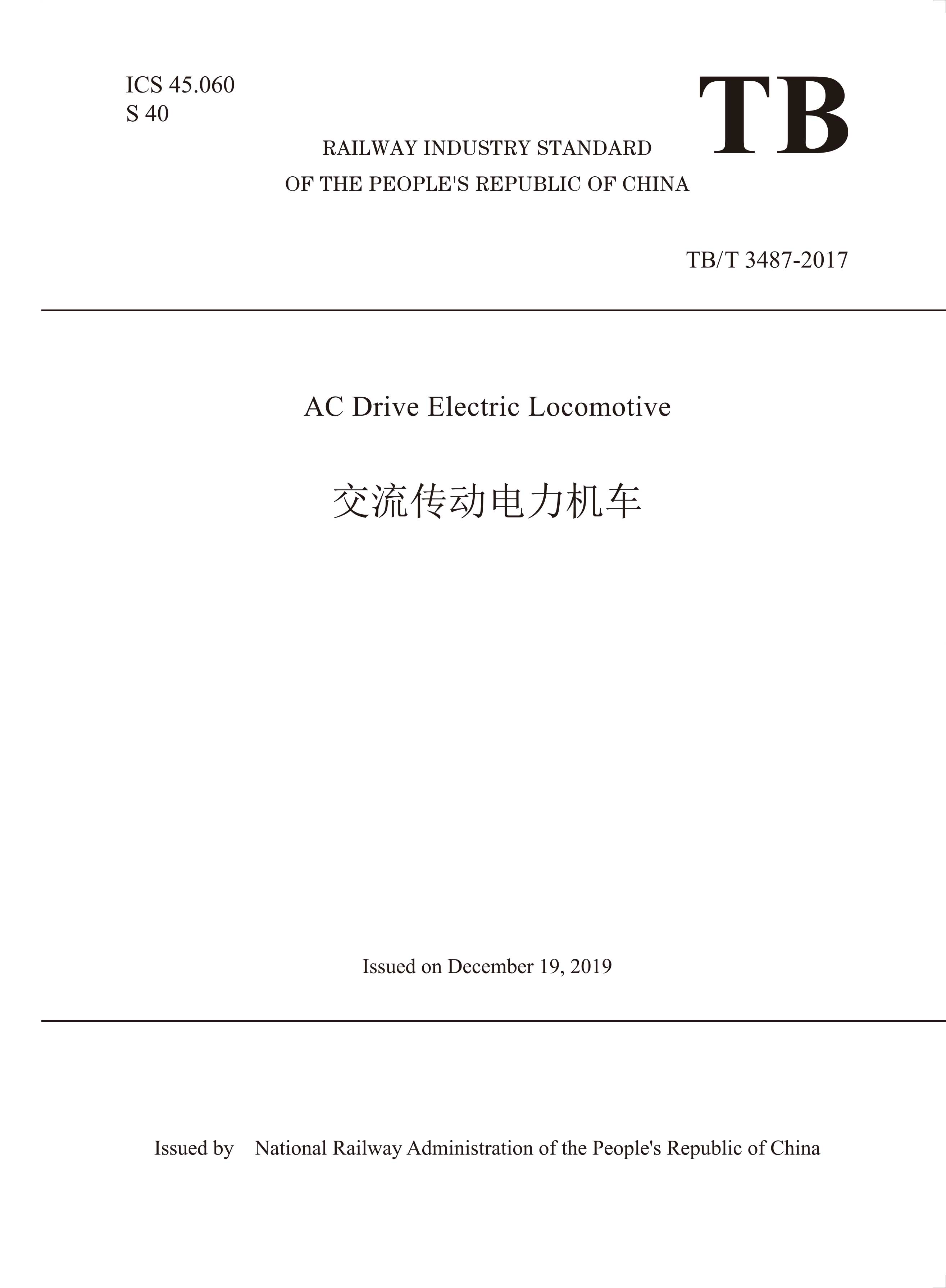 书名:TB/T 3487-2017 AC drive electric locomotive交流传动电力机车