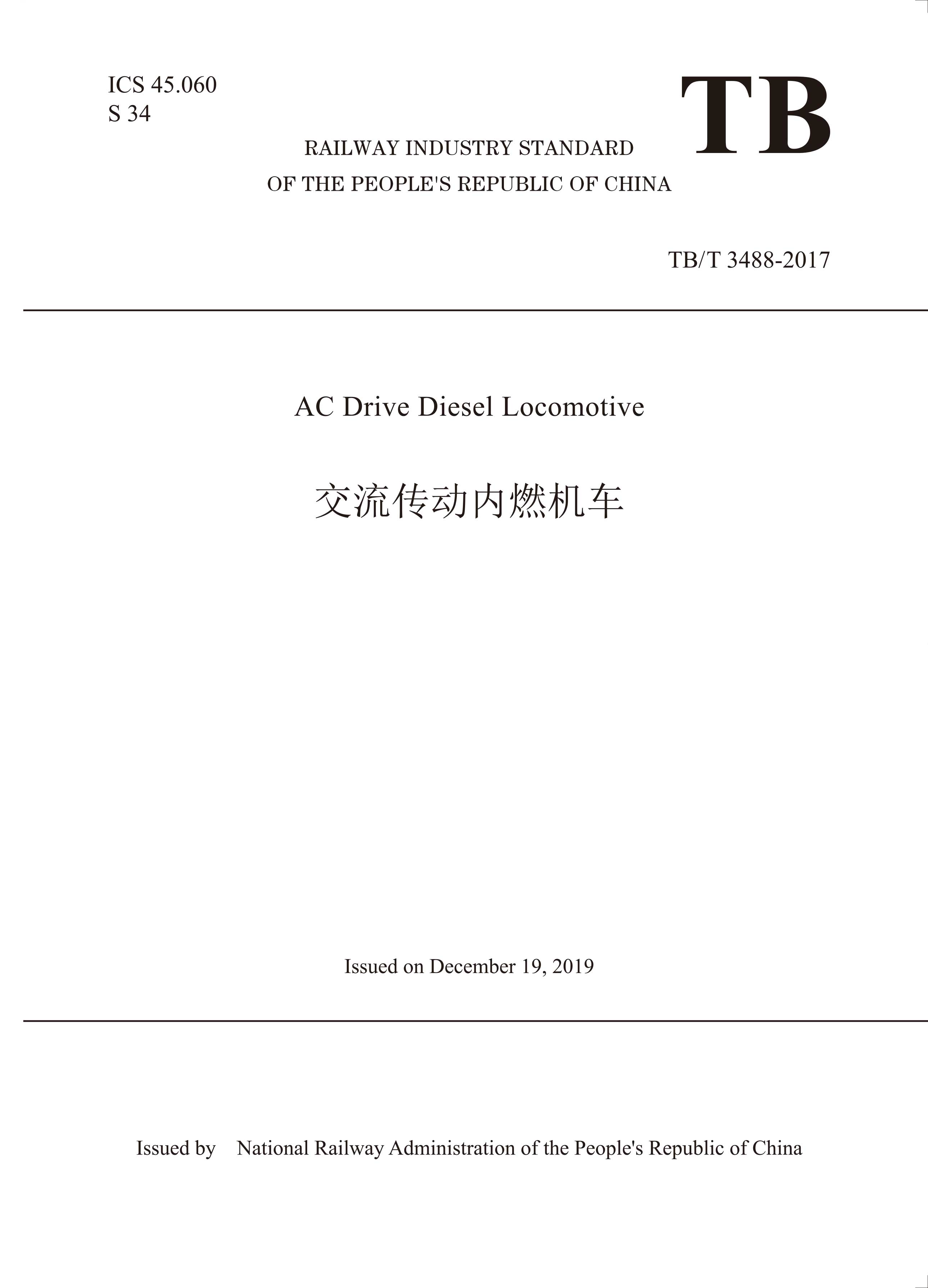 书名:TB/T 3488-2017 AC drive diesel locomotive交流传动内燃机车