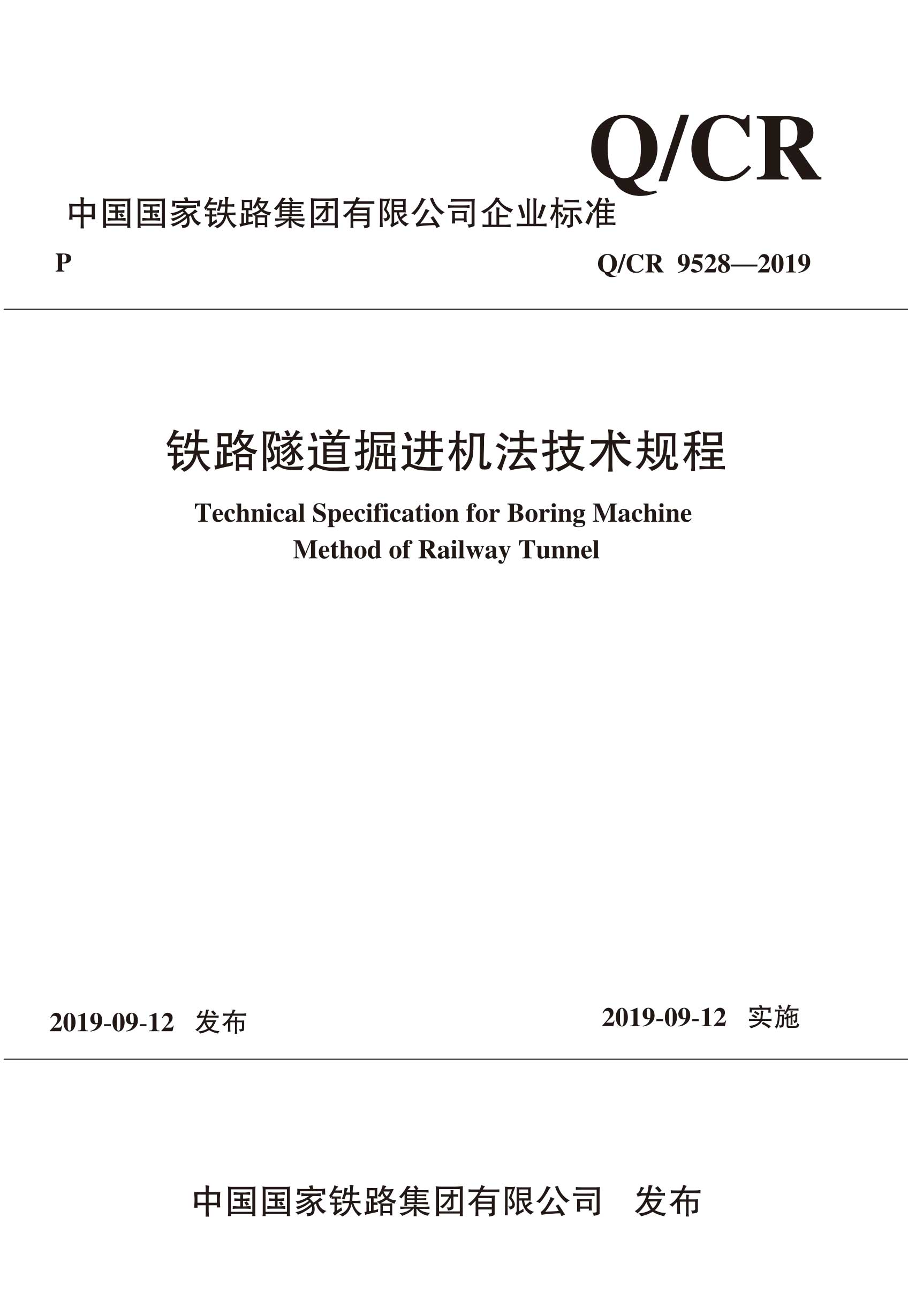 书名:Q/CR 9528-2019 铁路隧道掘进机法技术规程