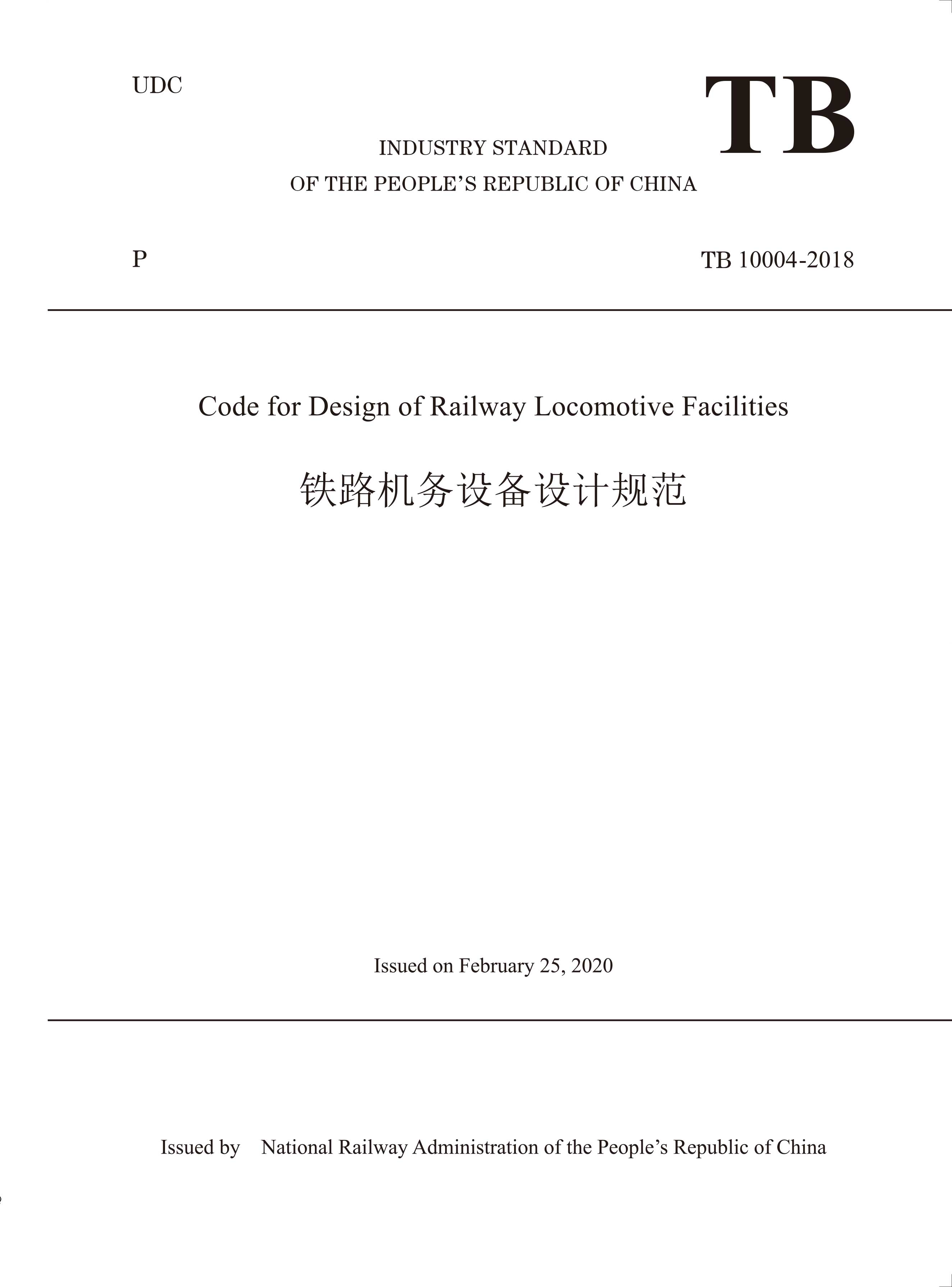 书名:TB 10004-2018 Code for Design of Railway Locomotive Facilities铁路机务设备设计规范