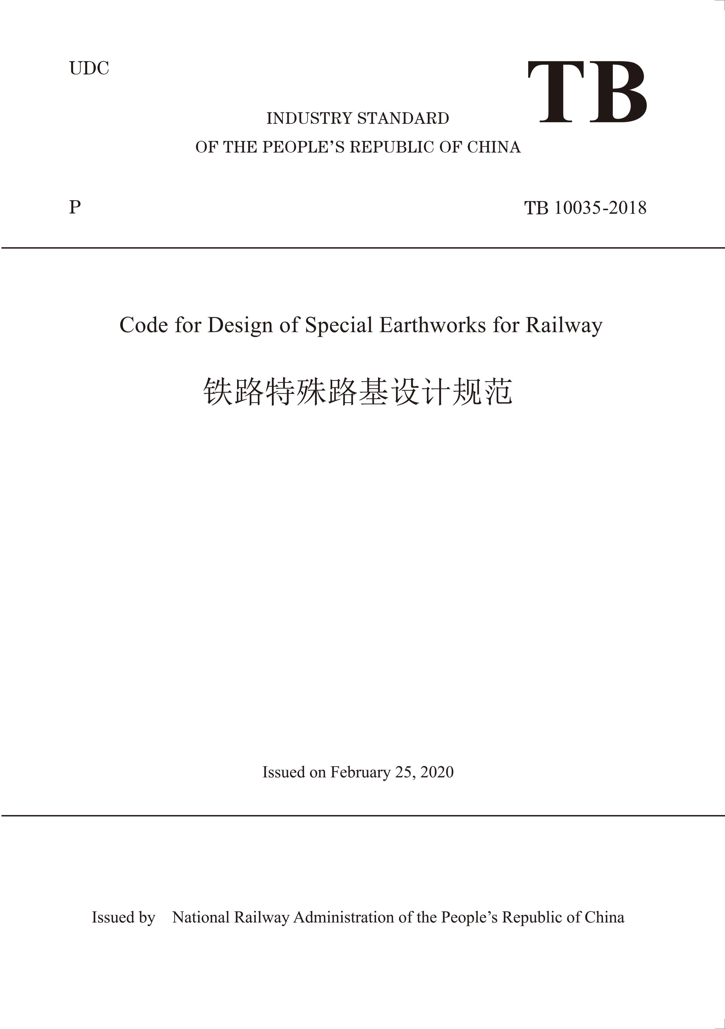 书名:TB 10035-2018 Code for Design of Special Earthworks for Railway铁路特殊路基设计规范