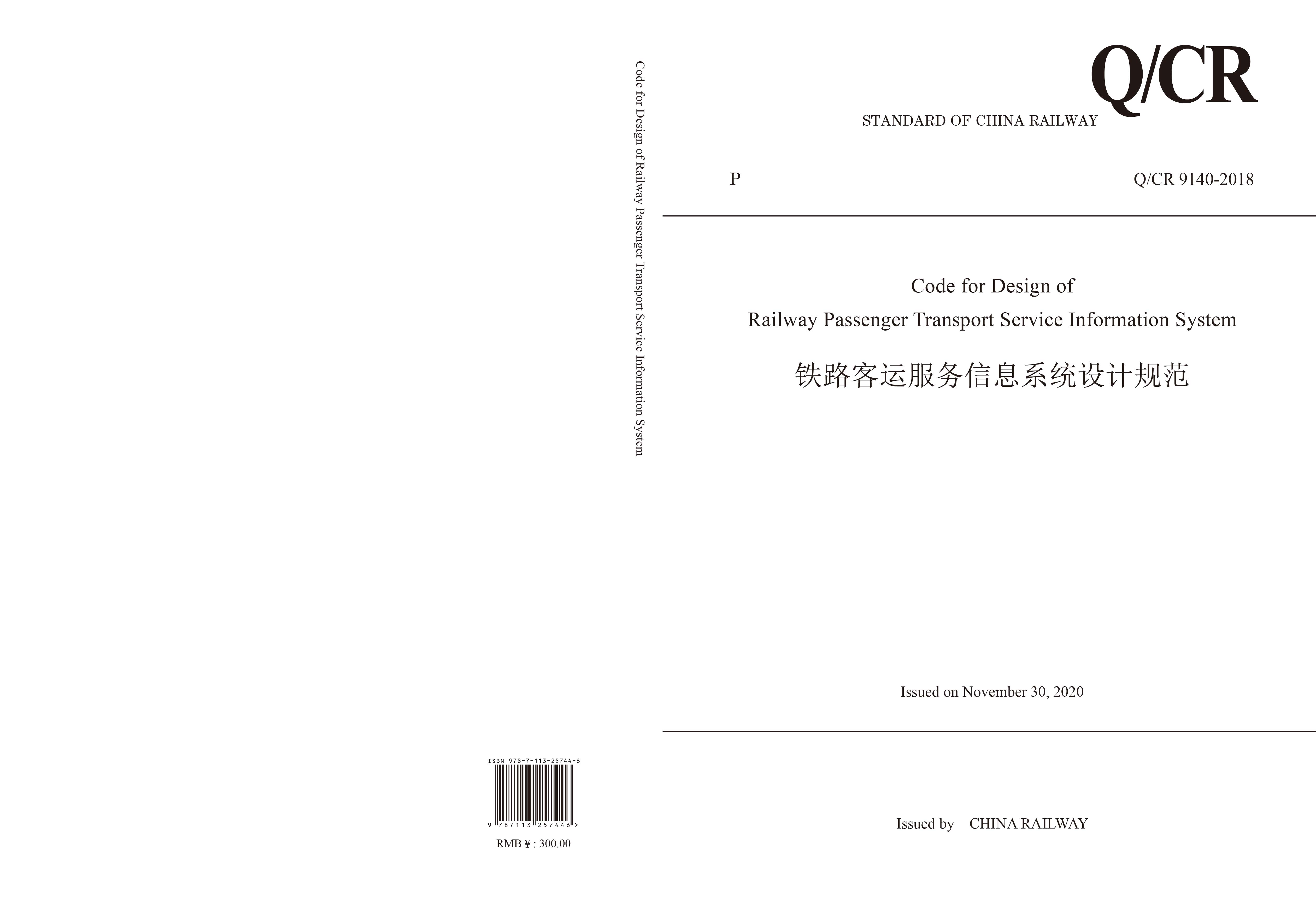 书名:Code for Design of Railway Passenger Transport Service Information System(铁路客运服务信息系统设计规范(Q/CR 9140-2018))
