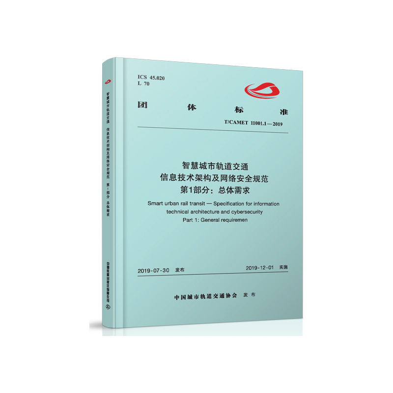 书名:T/CAMET11001.1-2019 智慧城市轨道交通 信息技术架构及网络安全规范 第1部分:总体需求
