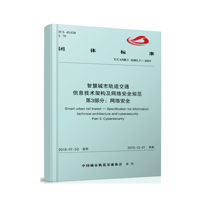 书名:T/CAMET11001.3-2019 智慧城市轨道交通 信息技术架构及网络安全规范 第3部分:网络安全