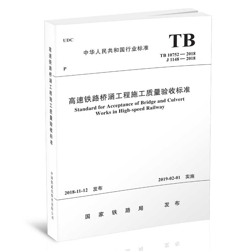 书名:TB 10752-2018 高速铁路桥涵工程施工质量验收标准