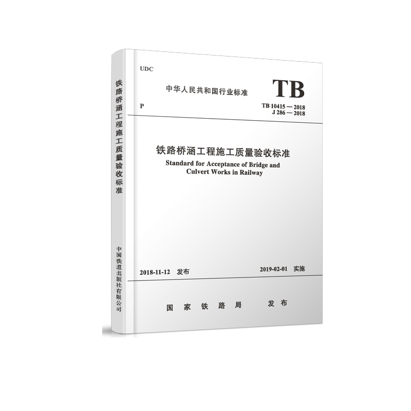 书名:TB 10415-2018 铁路桥涵工程施工质量验收标准