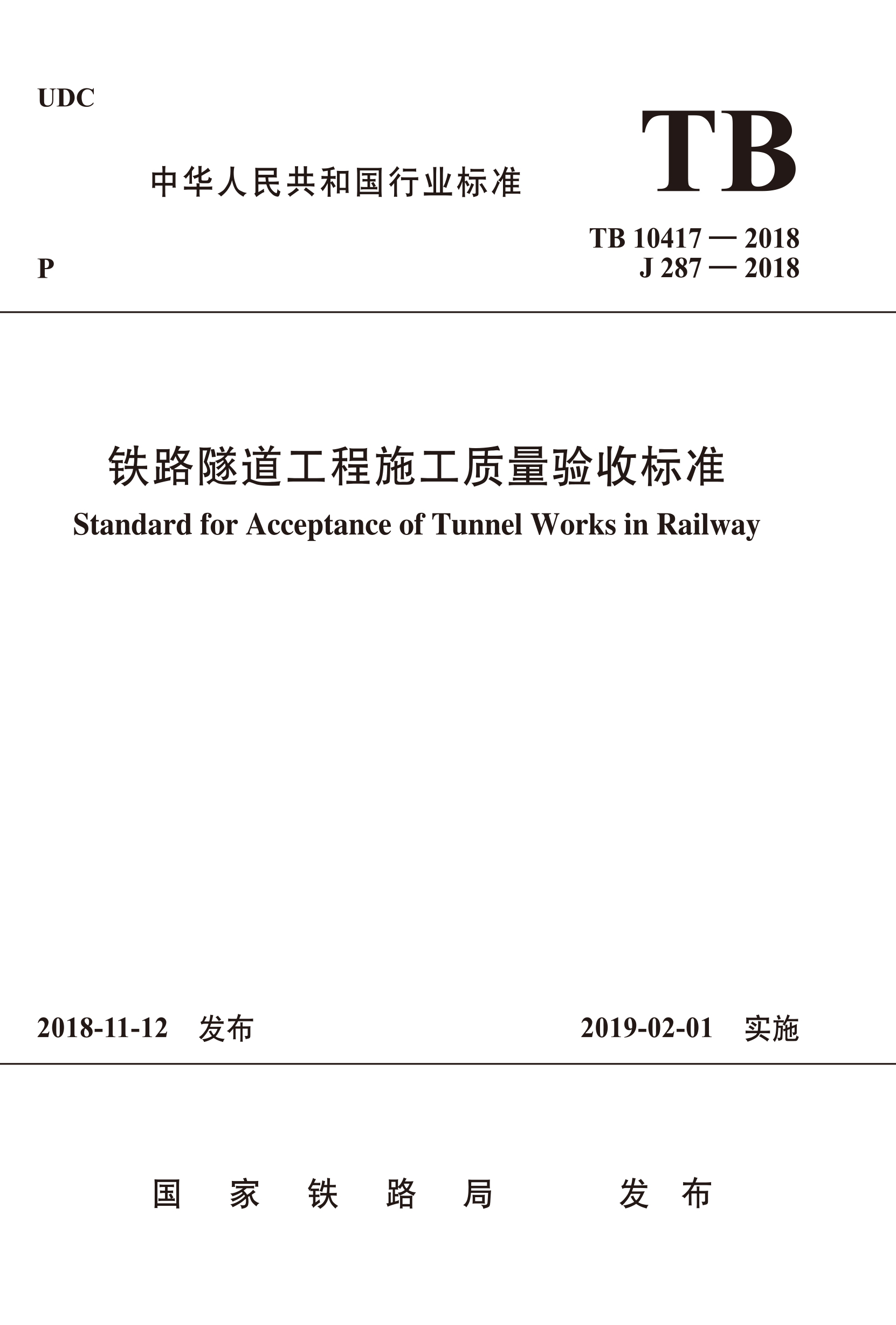 书名:TB 10417-2018 铁路隧道工程施工质量验收标准