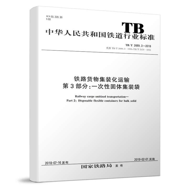 书名:TB/T 2689.3-2018 铁路货物集装化运输 第3部分:一次性固体集装袋