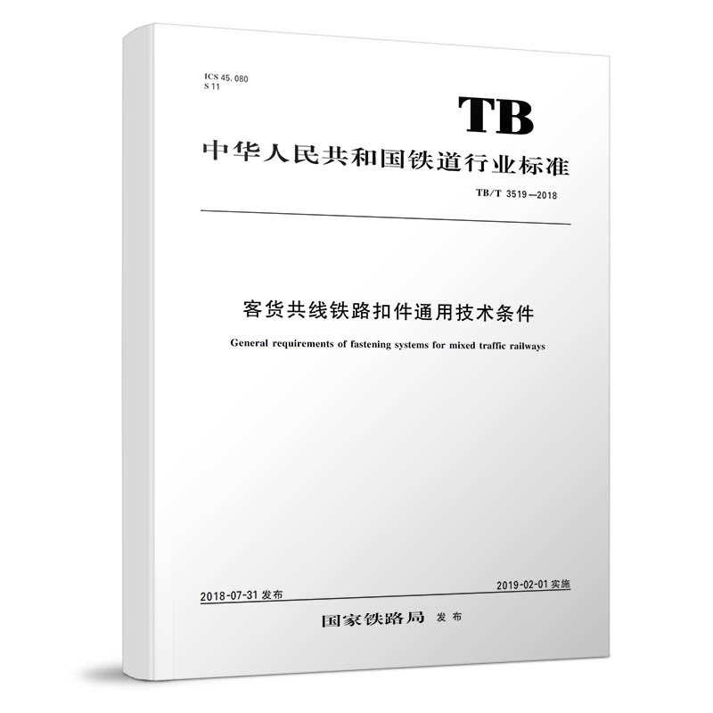 书名:TB/T 3519-2018 客货共线铁路扣件通用技术条件