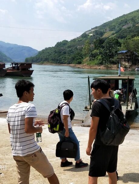 江边泊着几艘旧船,要等够人才开船。小伙子们还没从晕车中缓过神来,司机师傅指了指对岸:“那儿就是八渡。瞧见那个穿黑衣裳的人没?你们主任在对岸等着呢。”