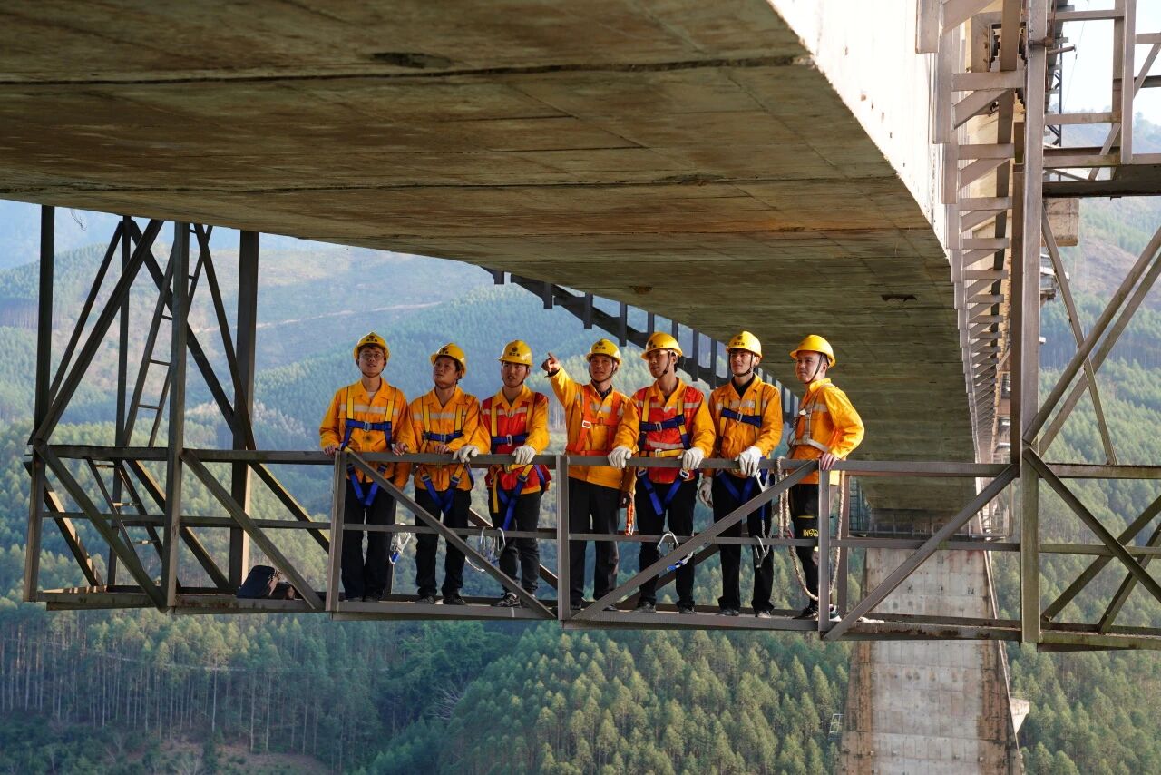 这里风景壮丽——碧绿的南盘江如一条丝带蜿蜒而过,与穿山跨河的南昆铁路交汇,蔚为壮观;这里位置特殊——车间辖区桥隧占比达79%,车站位于滑坡地段,是汛期防洪的重中之重;这里环境险要——105米高的南盘江大桥连接两省区,桥身采用特殊的V形支撑结构,需要检修人员定期维护,作业场面堪比极限运动。