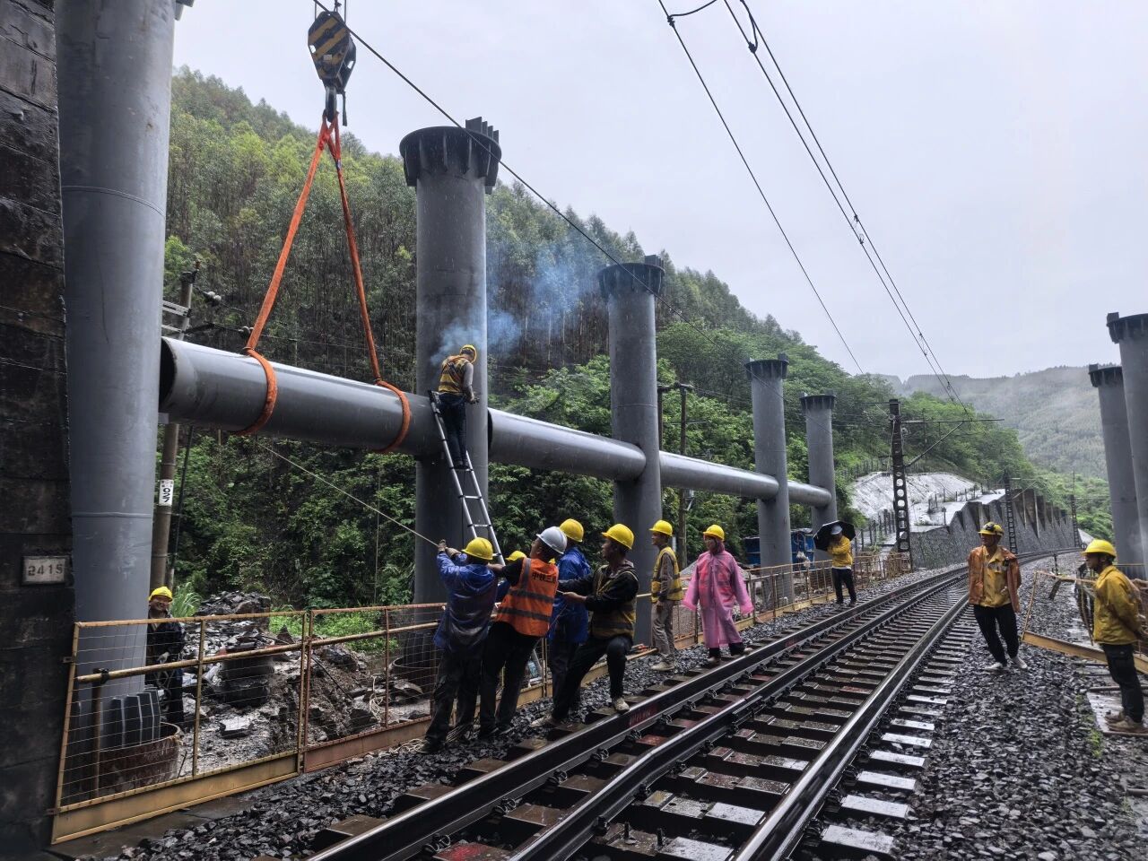 交通中断,后勤补给难以送达,直到夜里九点,抢险的同志们才吃上当天的第一口饭。那一夜,有人靠装淤泥的编织袋御寒,有人不眠不休干了个通宵。当现场人员传来“列车可以限速通过”的消息,大伙儿疲惫的脸上,已分不清是雨还是泪。