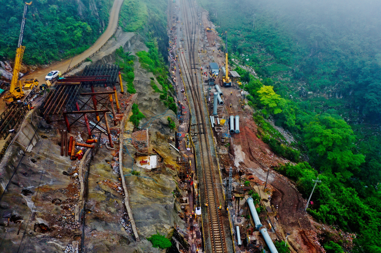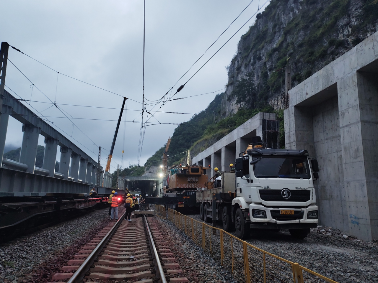 2025年9月,南昆线K411棚洞施工点正在进行吊装作业。