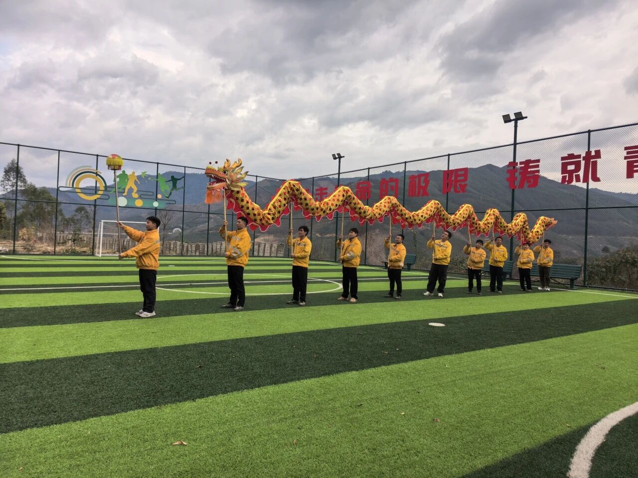 2025年4月,八渡路桥“青工班”在八渡站区足球场筹备舞龙表演。