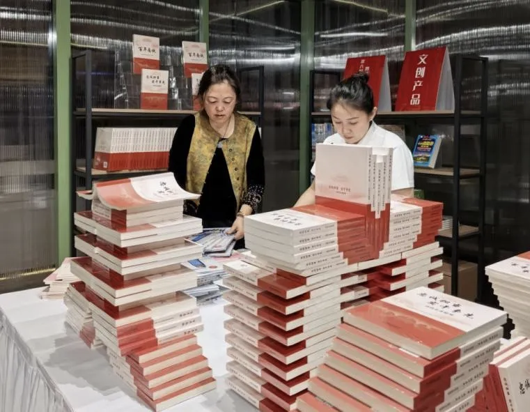 铁路文创展示区同样人气旺盛。以复兴号智能动车组“龙凤呈祥”为原型设计的车模签字笔、印有蒸汽机车等经典图案的陶瓷杯垫以及铁路主题的明信片、盲盒、书签等文创产品将铁路文化融入日常生活,吸引着读者们驻足选购。