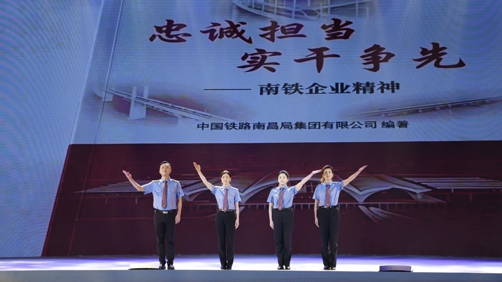 南昌局集团公司职工深情演绎了推荐图书《忠诚担当 实干争先——南铁企业精神》的主要内容,揭示了百年南铁赓续传承的精神密码,生动诠释了“人民铁路为人民” 的根本宗旨。