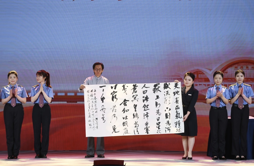 进入“聆听丹心千古”篇章,江西吉安县文天祥纪念馆讲解员肖靓婷、中国书法家协会理事、铁路文联书法分会主席施恩波与南昌局集团公司职工联袂演绎情景剧《遇见文天祥》,实现南宋名臣与当代铁路青年跨越时空的精神对话,赢得满堂喝彩。