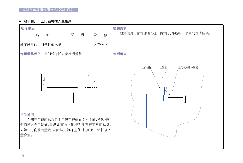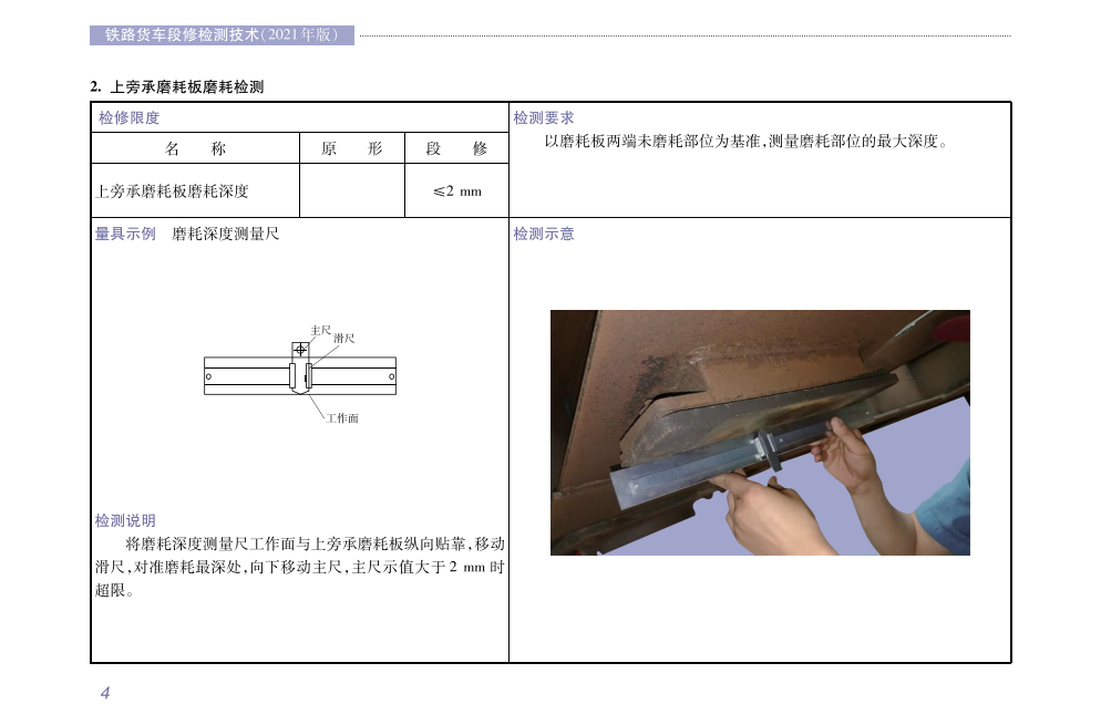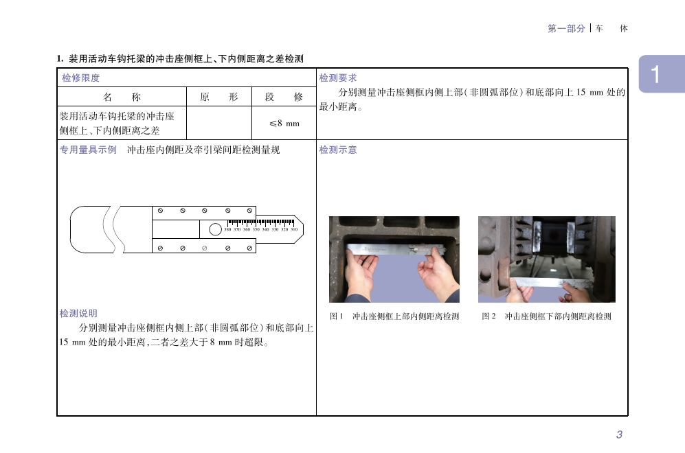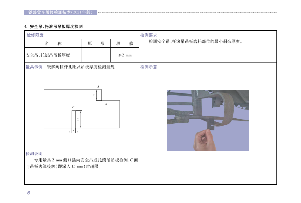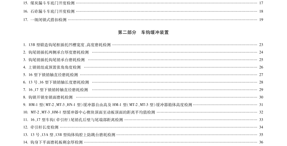 本书分为车体、车钩缓冲装置、转向架、轮轴、制动五个部分,每一部分都包含了铁路货车段修过程中的主要检测项点,每一个检测项点均涵盖检修限度、检测要求、量具示例及检测说明、检测示意四部分内容。检测限度汇总统一了相关技术要求;检测要求科学合理,明确了检测基准和部位,是使用检测器具及制定检修工艺必须执行的基本技术要求;量具示例、检测说明和检测示意图文并茂,便于读者理解和掌握量具的使用和具体检测方法,能有效地指导货车段修工作。本书严格执行规章、标准要求,兼顾生产实际、操作方便等因素,内容覆盖了货车段修过程中相关检测项点,提供了检测说明和图示,规范了测量基准、检测过程等各项内容,既适用于铁路货车段修相关一线职工,也适用于检测器具的研发、生产以及相关检修工艺的制定等各项工作科研人员。