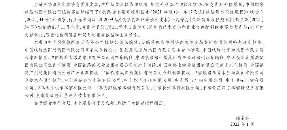 本书既适用于铁路货车段修相关一线职工,也适用于检测器具的研发、生产以及相关检修工艺的制定等各项工作科研人员。本书编委会